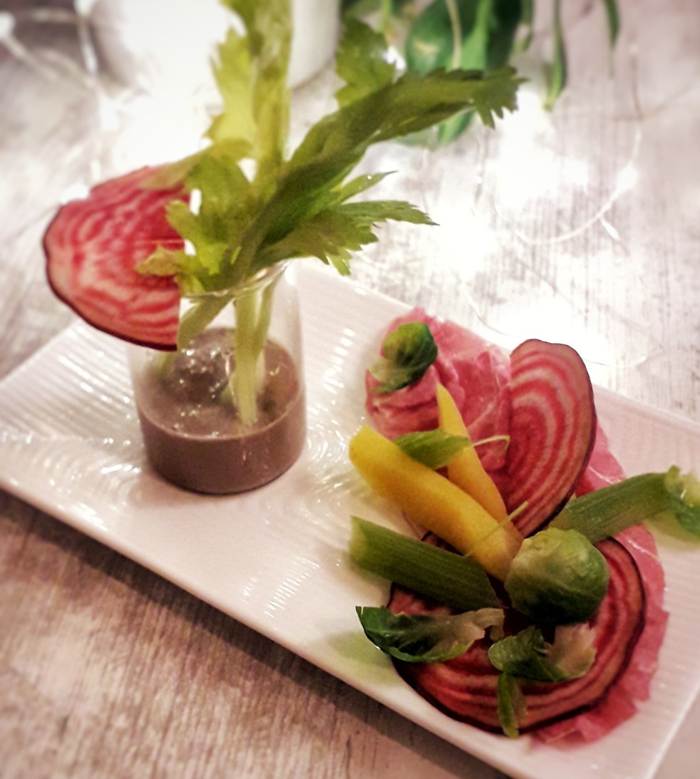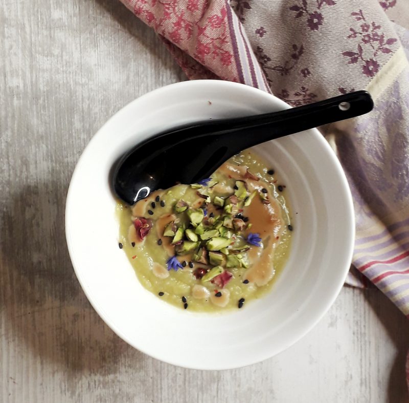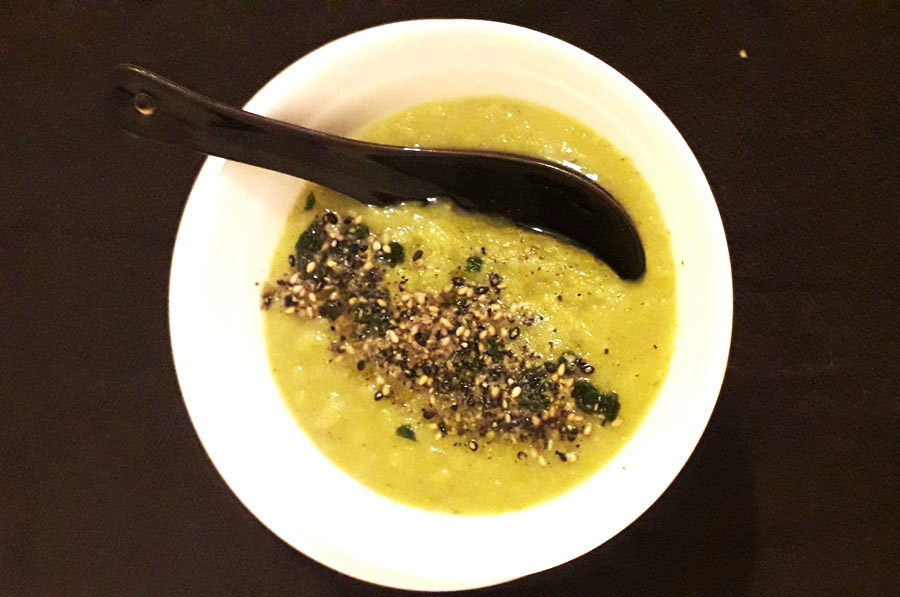 Vellutata invernale aromatica di sedano rapa e porri con salsa allo shiro miso