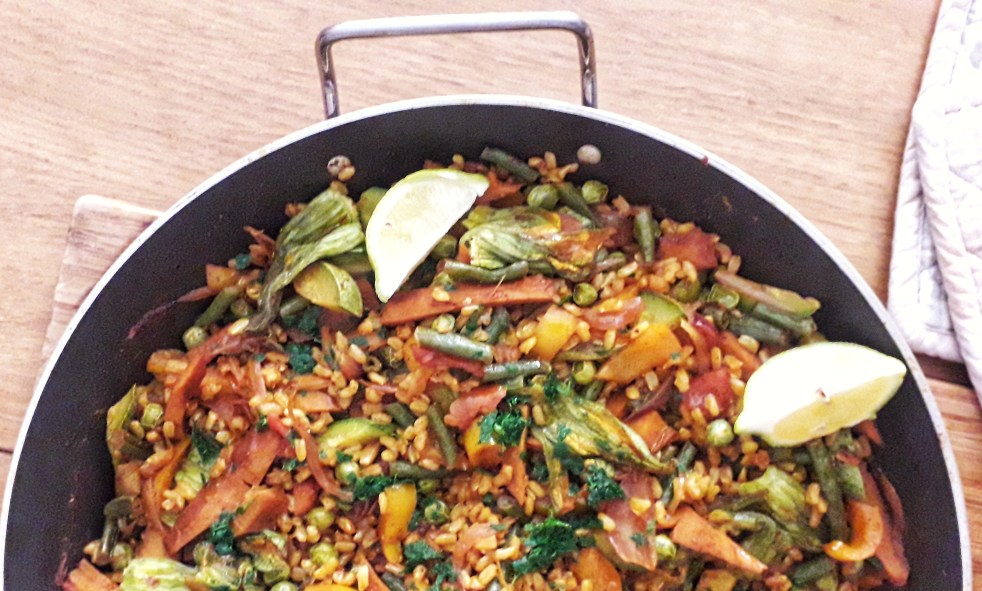 La paella veg, colorata, sfiziosa e profumata. Un piatto unico che mette tutti d'accordo. Disponibile anche in versione senza glutine.