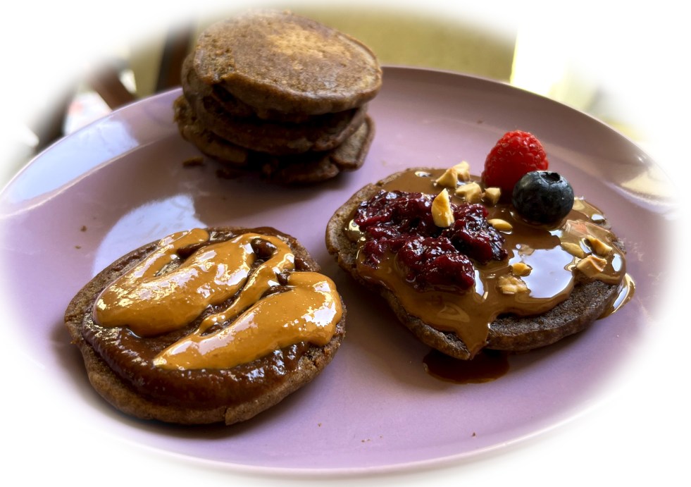 Pancake di grano saraceno in chicco, ricchi di energia vitale e senza glutine, eccellenti per la colazione anche di chi fa attività sportiva