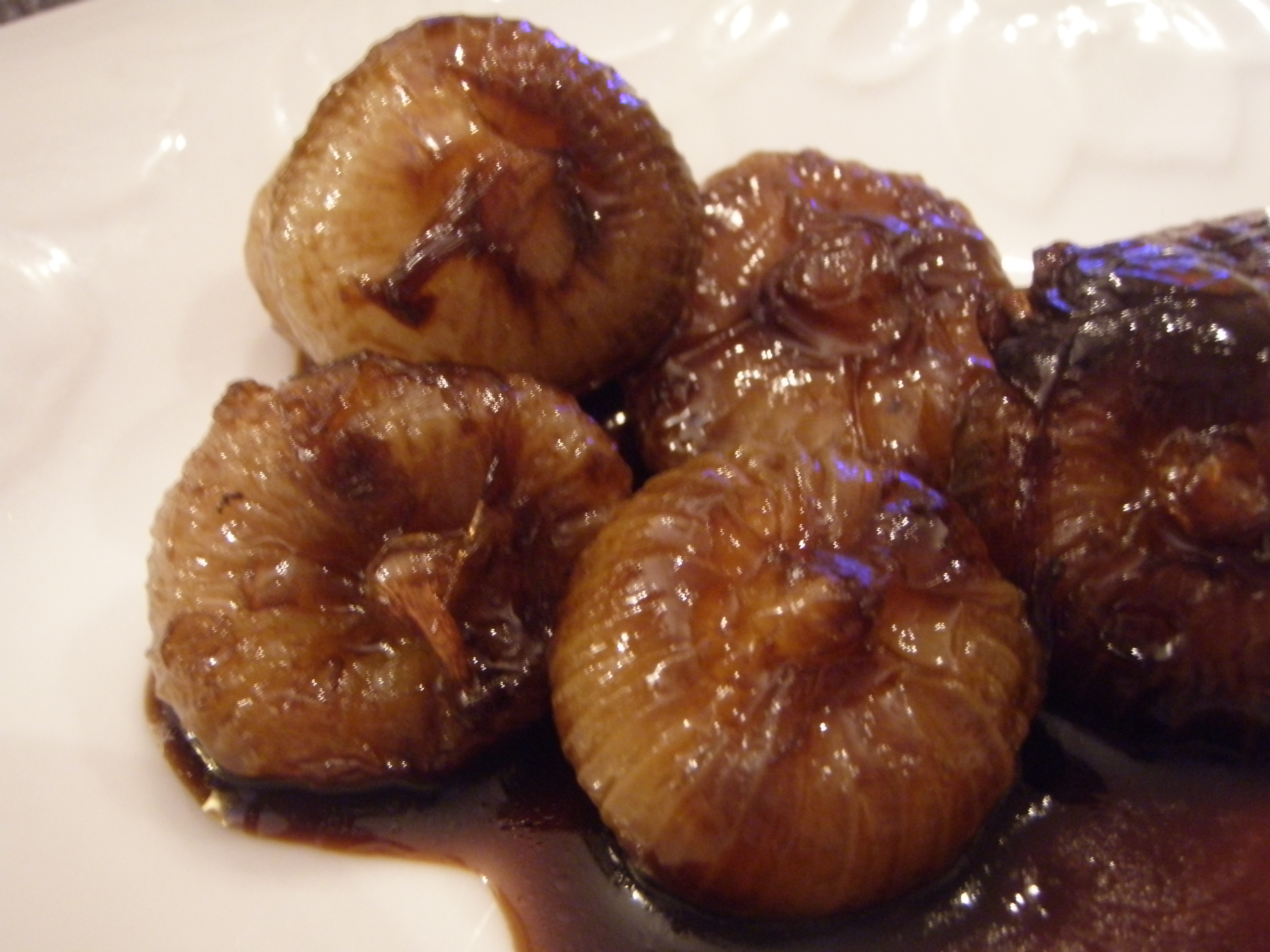 In una padella scaldare l’olio e le foglie di alloro, aggungere le cipolline ed il pizzico di sale. Rosolare qualche minuto, poi aggiungere l’aceto balsamico, in cui avrete già sciolto lo zucchero. Saltare a fuoco vivo un paio di minuti, quindi abbassare il fuoco e stufare con coperchio per circa 30 minuti. Se necessario aggiungere un pochno di acqua durante la cottura. A termine cottura la cipolline tenderanno a disfarsi e la salsa si sarà ristretta ed avrà un aspetto caramellato…. et voilà pronte in tavola!