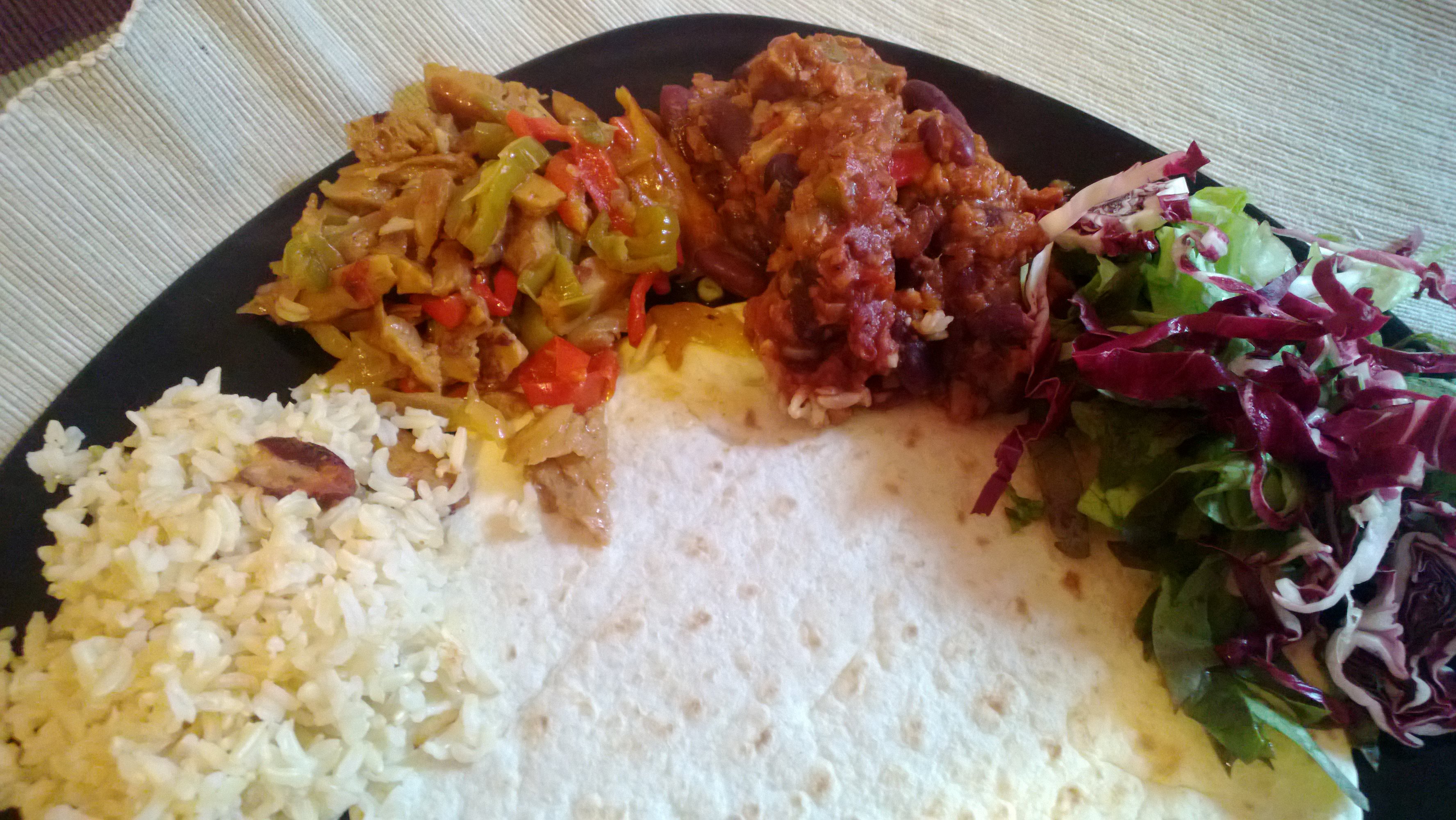Direi di metterci all’opera perché ci vuole un po’ di tempo … tranquilli, non troppo …  ma dobbiamo preparare il riso, il chili con seitan, i peperoni con striscioline di seitan e per finire la guacamole e il “pico de gallo”.