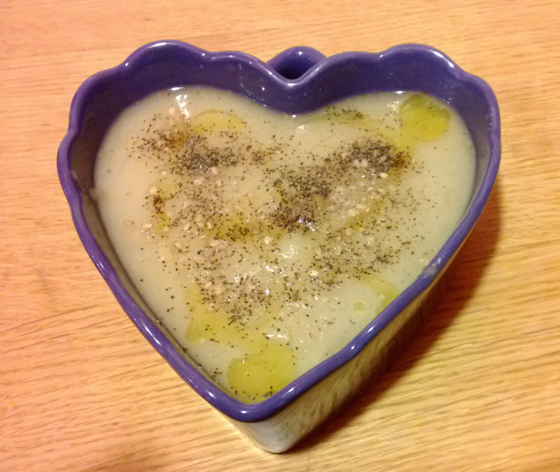 Mondare le cipolle e tagliarle e lunetta; quindi in una ampia casseruola scaldare l’olio aggiungere le cipolle, farle appassire a fuoco medio-basso per circa 15 min., insaporire con le erbe aromatiche, aggiungere la farina, mescolare subito per evitare che si formino i grumi, quindi versare il brodo vegetale e proseguire la cottura per 45-60 minuti a fuoco basso. A questo punto le cipolle si disfano, liberando tutta la loro dolcezza e la consitenza diventa cremosa, lasciare intiepidire, servire con una spruzzata di pepe e un giro di olio evo … e un crostino di pane a lievitazione naturale! … Questo piatto vi donerà una profonda dolcezza naturale che vi rilasserà profondamente! … un efficace anti-stress! 🙂