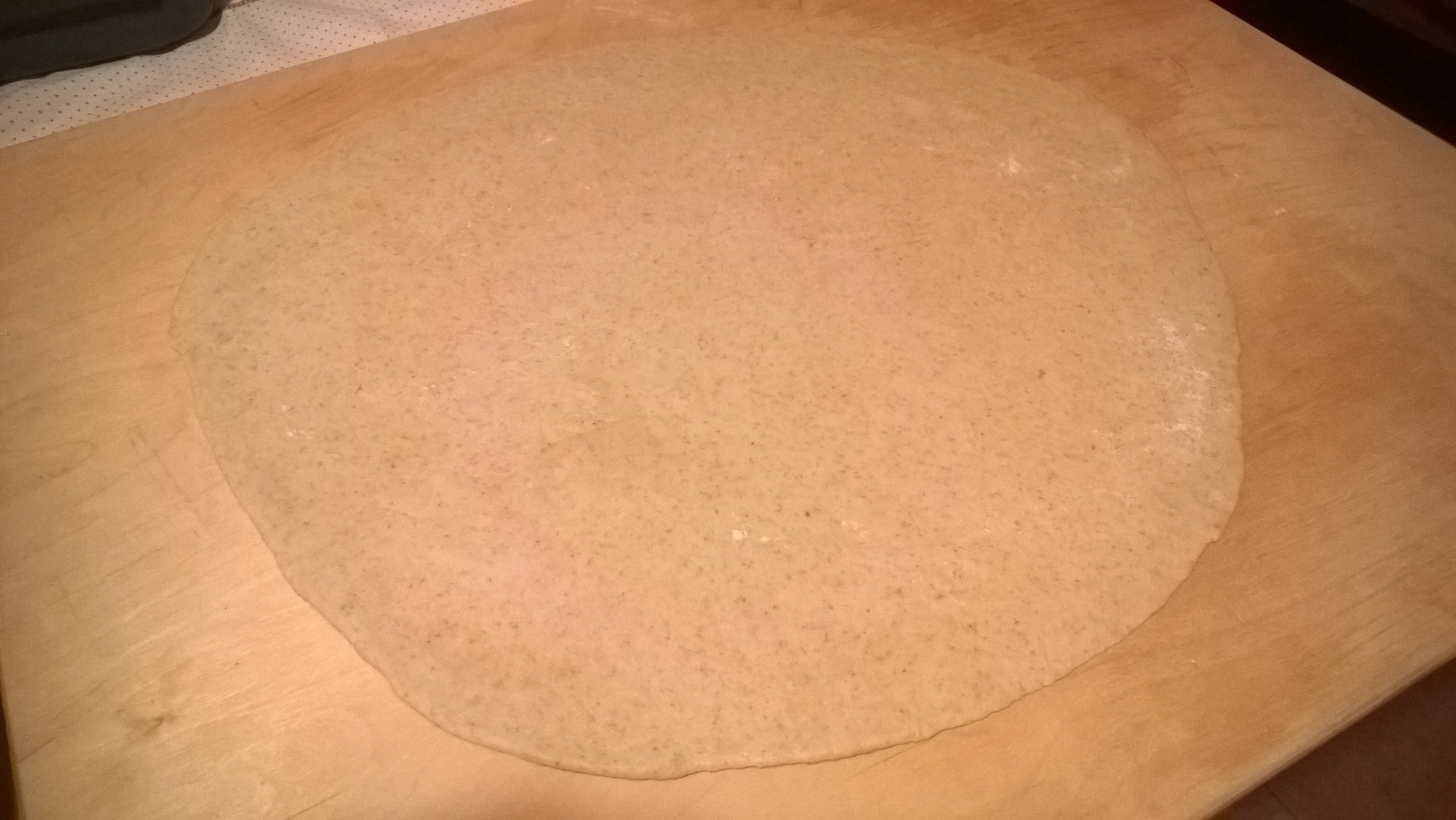 7. Stendere la pasta in una sfoglia circolare dello spessore di circa mezzo centimetro.