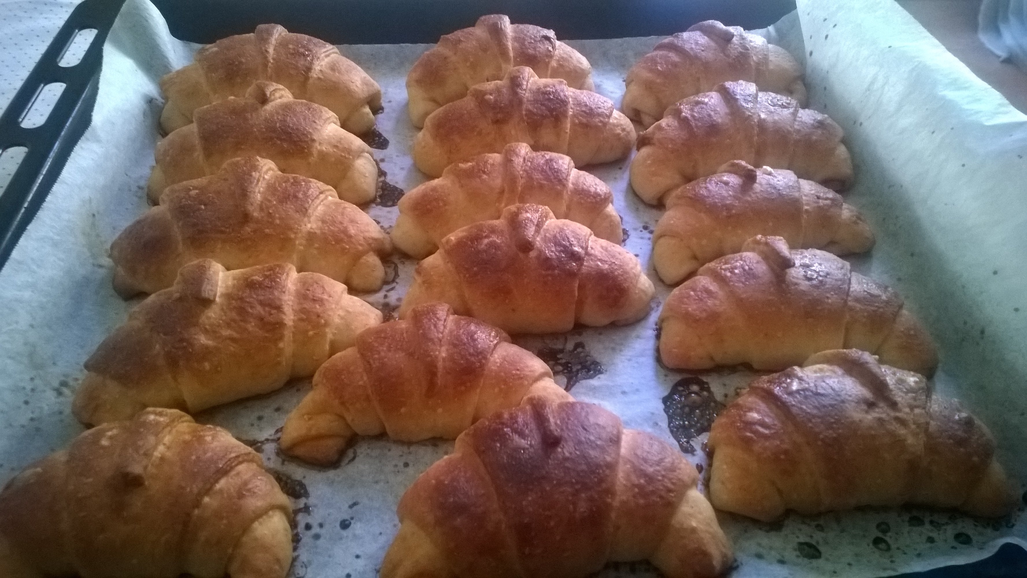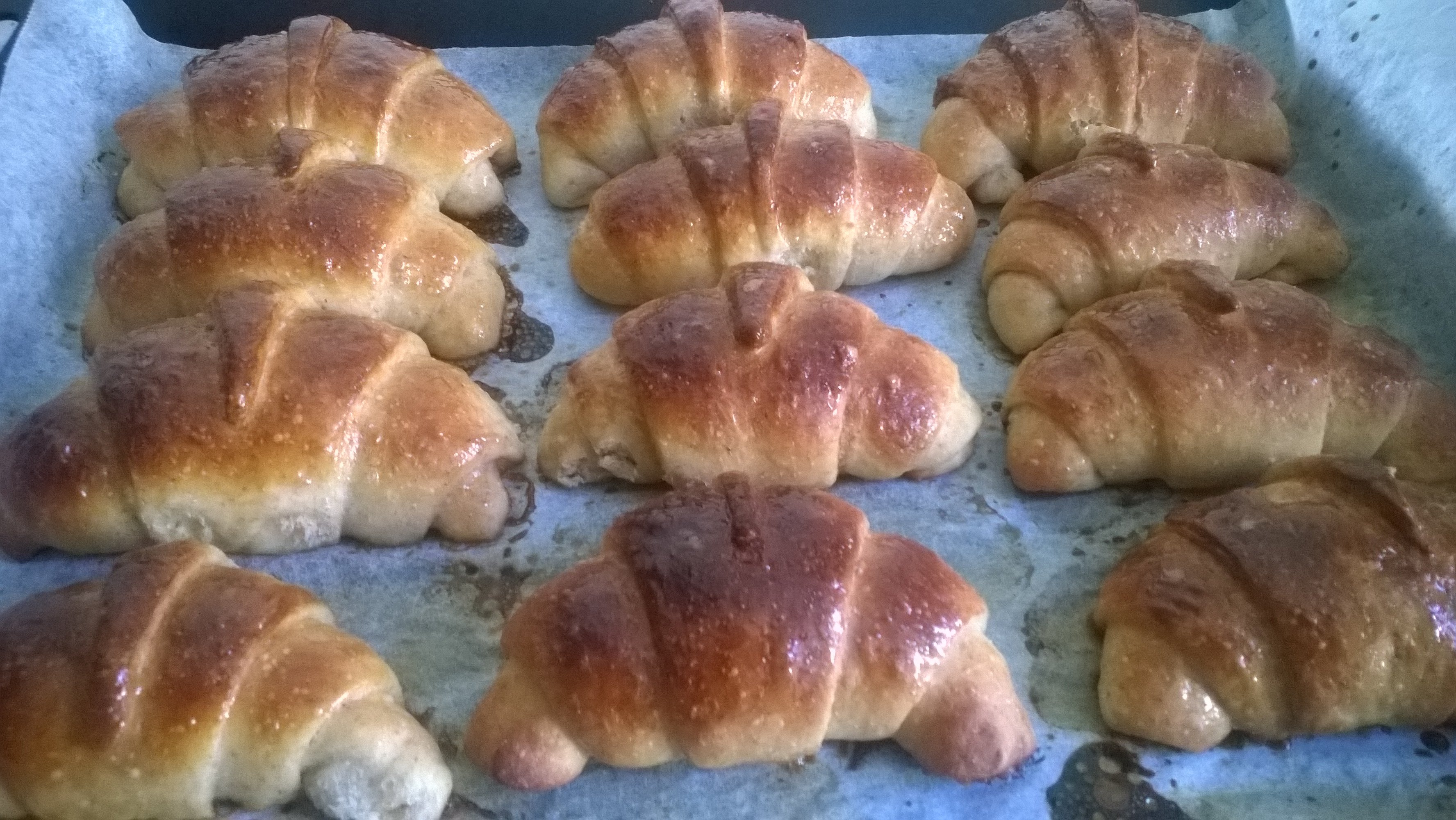 … ed ora manca il tocco finale, spennellare i cornetti con acqua e malto per lucidarli e renderli perfetti!