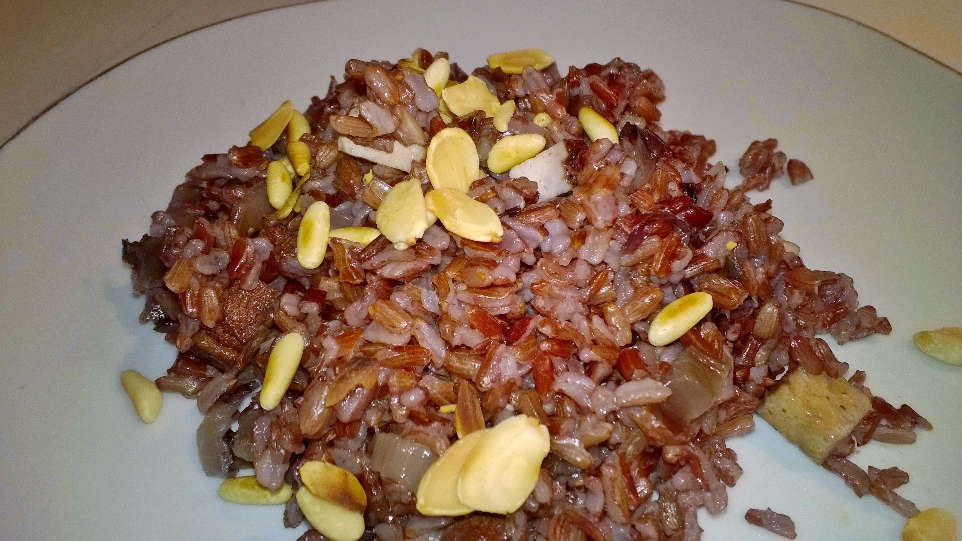 Il riso è un cereale eccezionale, privo di glutine, ricco di carboidrati, proteine, sali minerali e vitamine. In particolare il riso rosso integrale è un riso fermentato con il lievito Monascus Purpureus che gli conferisce il caratteristico colore e lo rende un alimento che riduce il rischio cardiovascolare grazie alle azioni antiaterosclerotiche e antinfiammatorie…. doppiamente buono! 🙂