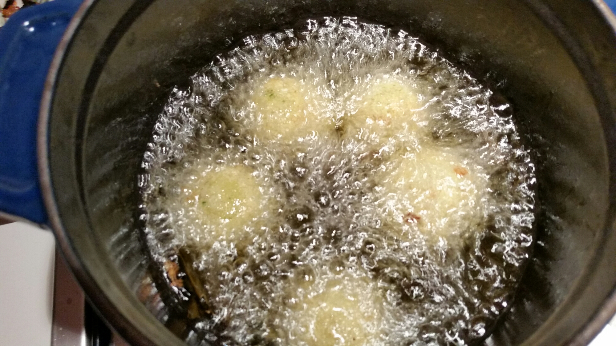 Nel frattempo prendere una piccola casseruola dal fondo spesso, io ad esempio uso la pentolina in ghisa della bourguignonne (che ormai non faccio più!) oppure ideale è anche un wok, e scaldare abbondante olio circa 3-4 dita, aggiungere un pezzetto di alga kombu per evitare che l’olio fumi e per controllare temperatura. Prima di iniziare a friggere fare una prova con una piccola porzione di impasto se va a fondo vuol dire che l’olio non è ancora abbastanza caldo, se invece appena immergete la pastella scompare tra le bolle dell’olio vuol dire che è troppo caldo, abbassare la fiamma e immegere alcune polpettine alla volta, l’olio deve coprire completamente le falafel. Non mettete troppe polpette alla volta altrimenti la temperatura dell’olio si abbassa e le falafel assorbirebbero troppo olio, farle dorare bene su tutta la superficie, occorrono un paio di muniti, scolarle e metterle su un piatto con la carta assorbente. Non lasiare mai l’olio senza nulla da friggere, quindi prima di rimuovere l’ultima falafel aggiungere quelle della tornata successiva.