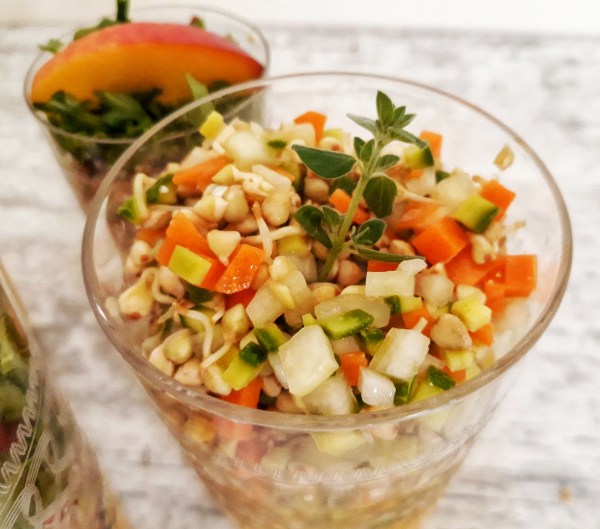 Io ho scelto la quinoa, uno pseudocereale dall’alto contenuto nutrizionale, molto adatto al periodo estivo. Per una preparazione alternativa ve la propongo in versione germogliata, che non ha bisogno di cottura. La germogliazione non solo inattiva i cosiddetti anti-nutrienti (ad es, fitati) ma rende più biodisponibili i nutrienti.