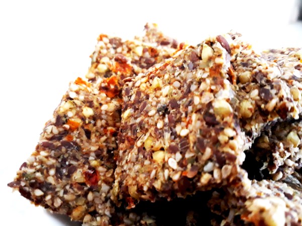 Devo dire che per essere un primo esperimento sono proprio soddisfatta! Crackers croccanti, crudisti, senza farine, senza glutine. Solo alimenti integrali e naturali! 🙂
