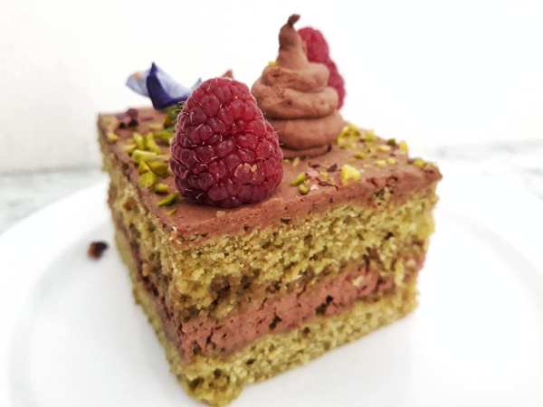 Infine per la guarnizione dei pistacchi bio di Sicilia tostati che richiamano il colore interno della torta e i meravigliosi lamponi, nella loro naturale maestosa perfezione!