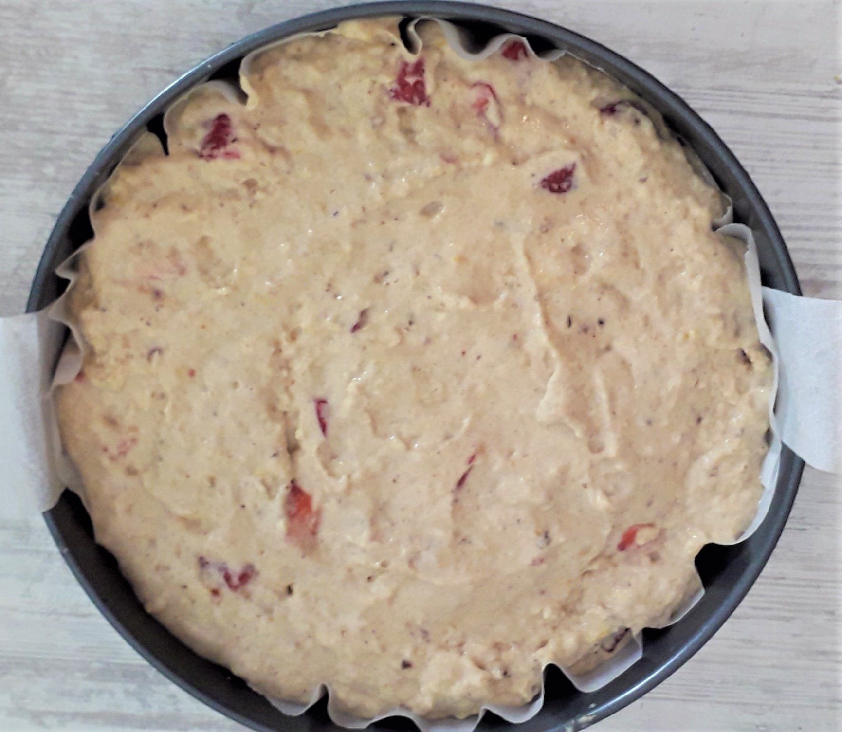 - Scaldare il forno a 175°C e rivestire una tortiera da 20-22cm con carta forno