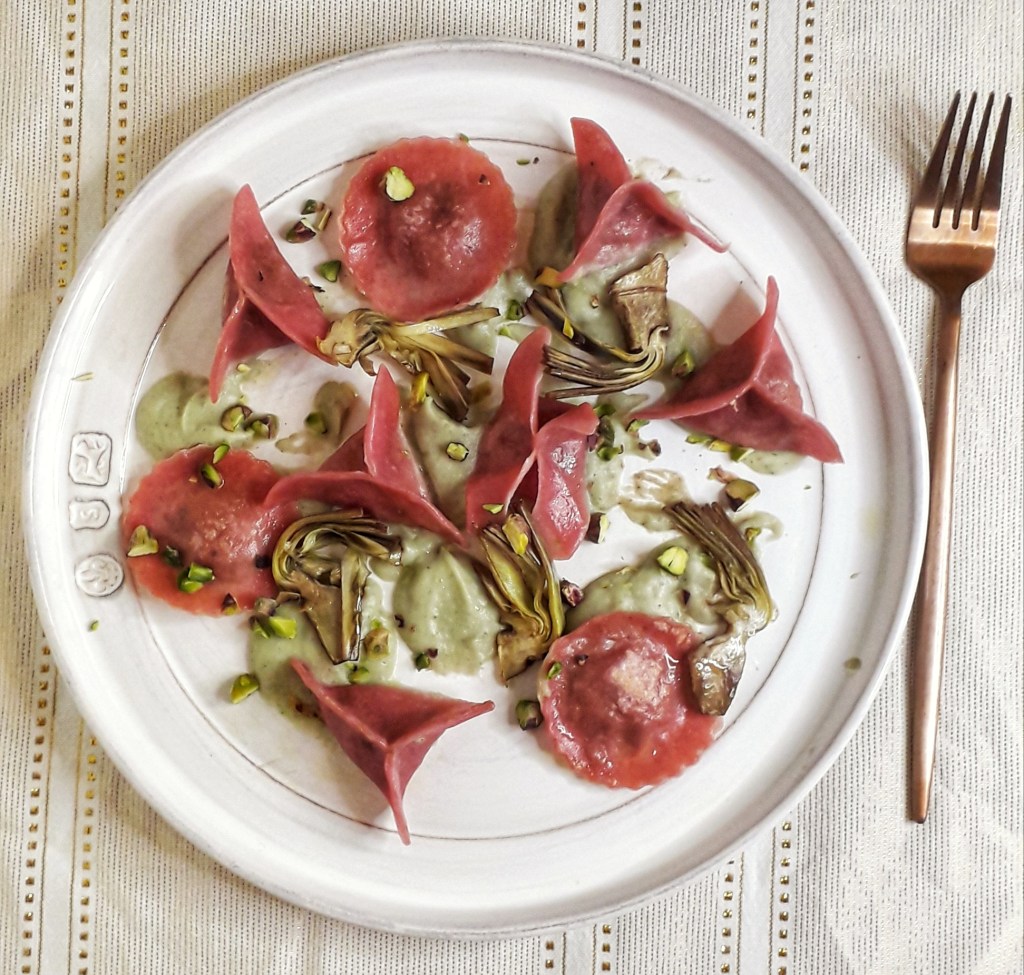 A casa mia Natale è pasta fresca fatta in casa, in particolare … ravioli! Essendo nata in Liguria uno dei ripieni invernali più tipici è con il fiore dell’inverno per eccellenza il carciofo!